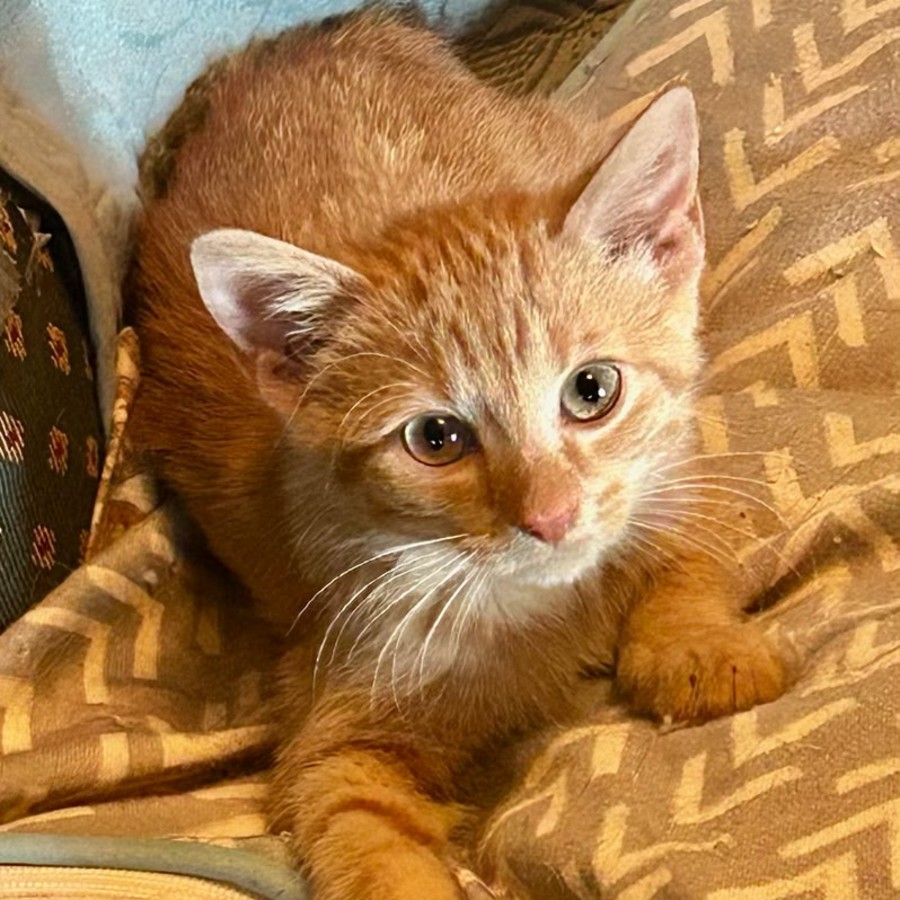 | SANDY 6 month old female. ![]() ![]() Sandy was left with her two brothers in a taped cardboard box in front of Linda's Vet's office on a Sunday. She was found by an employee who came to feed and medicate animals at the clinic. Linda is currently fostering her. She is a socialized and very sweet kitten with a periodic surge of energy that can result in mischief. |
