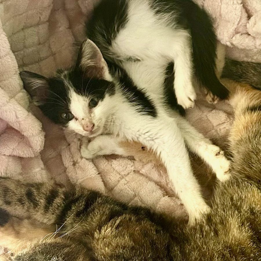 CLOVER 6 month old male. ![]() ![]() Clover showed up in a friend's yard at 5-6 weeks old. Linda took him in immediately. His black and white coat is unique and very soft. His attitude is a bit laid back, but he absolutely loves to be petted and paid attention to. He is best buds with Sandy. |