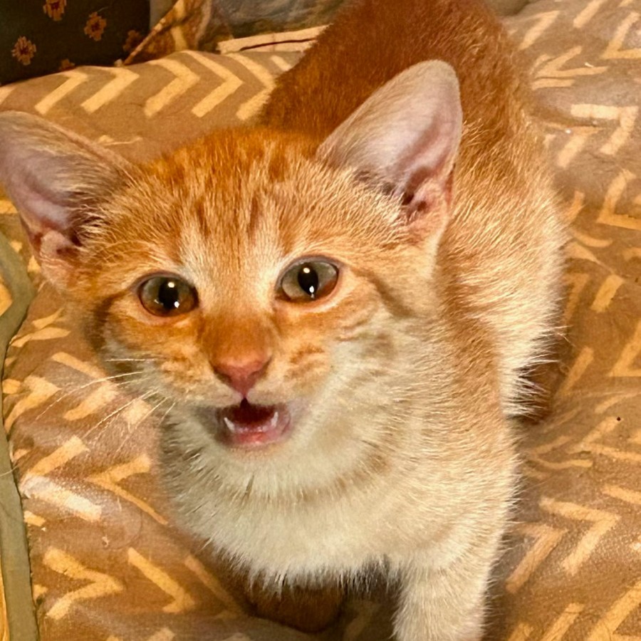 | SANDY 6 month old female. ![]() ![]() Sandy was left with her two brothers in a taped cardboard box in front of Linda's Vet's office on a Sunday. She was found by an employee who came to feed and medicate animals at the clinic. Linda is currently fostering her. She is a socialized and very sweet kitten with a periodic surge of energy that can result in mischief. |